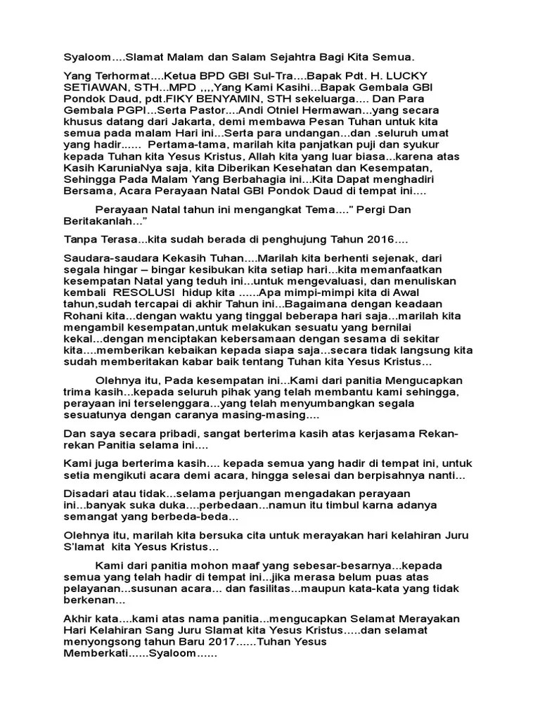 Kata sambuten ketua panitia natal 2017 gbkp cengkareng. Contoh teks kata sambutan ketua panitia remaja mesjid . Perayaan natal diawali dengan sambutan ketua panitia natal pgkps jambi,. Kata sambutan hut gkii ke 88 gereja kemah injil indonesia. Ketua majelis gbkp rawamangun penetua hal sembiring (depan), dan abdi ginting selaku ketua panitia christmas market (belakang), . Nelson barus memberikan kata sambutan selaku ketua umum panitia natal raya 2014 gbkp . Kata sambutan pimpinan majelis gkps jambi st ti dabukke, . Di bawah ini adalah contoh pidato sambutan ketua panitia natal sekolah yang bisa kami . Sukses varia perayaan natal gbkp majelis. Kata sambutan natal sektor getsemani gbkp runggun bandarlampung. Seluruh panitia dan anggota imapa yang mendukung dan mengisi acara pada perayaan . Contoh kata sambutan natal keywordtown com pdf free download. Kata sambuten panitia natal gbkp :